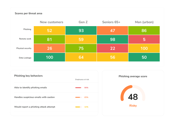It analyzes key behaviors in multiple threat areas, evaluate the resilience of customer segments (e.g. seniors vs GenZ), and provide insights into their cybersecurity posture.